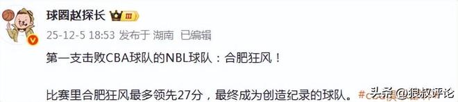 | 北京时间12月5日,CBA杯赛继续开打,合肥狂风100-80击败江苏肯帝亚。成为NBL球队当中,首支在正规比赛击败CBA球队的队伍,创造历史性时刻。 数据: 合肥:阿格拉瓦尼斯25分8板2助2帽、哈德森23分11板3助3断、麦考伊15分4板3助、刘子豪10分2助、张稀然6分2板7助 江苏:爱德华兹16分4板2助、庞峥麟16分2板6助、亨特13分6板3助、贾尔斯11分2板、刘正清10分4板1助、马国栋5分、郑祺龙4分3板、闫实3分、肖恺2分、刘泽希3板2助、吴羽佳2板。 本场比赛的结果也引发外界的热议。 媒体人“LindaWooo”发文点评“见证了, NBL球队大胜CBA球队 CBA俱乐部杯NBL合肥狂风战胜CBA江苏肯帝亚 … 前天江苏男篮还刚战胜辽宁男篮”。 媒体人“季孟年”发文点评“合肥击败江苏,NBL球队在本次俱乐部杯的首胜,历史性的一战!”。 有球迷点评说道:“合肥净胜分,居然排第一,辽宁第二,江苏第三”。 肯帝亚属实有问题,主教练得担责。 下半区两个CBA球队让NBL的球队排名第一,我无语了。 对于球迷吐槽,实际上是可以理解的,江苏肯帝亚作为CBA传统强队之一,但随着投入减少,青训减少也衰退明显,竟然打不过NBL的合肥队。 |