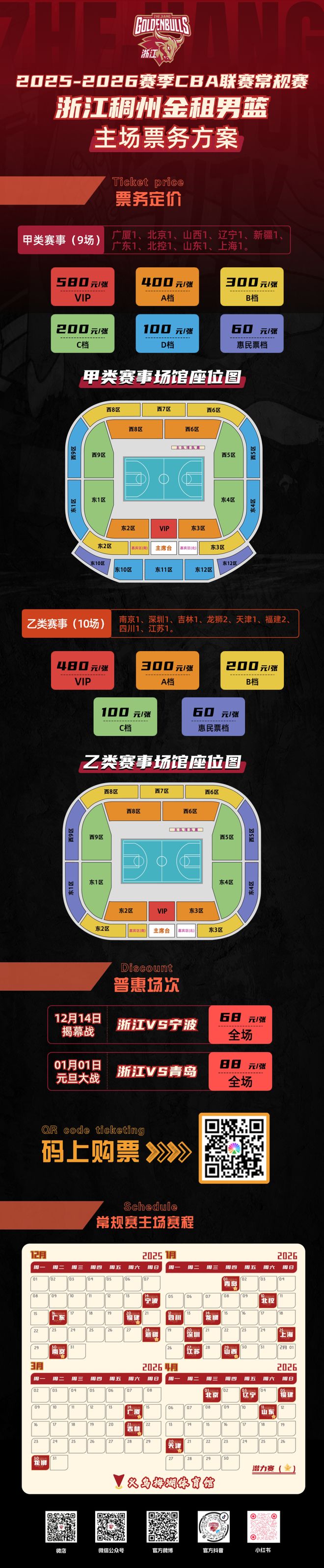 揭幕战全场68元!20252026赛季CBA联赛浙江稠州金租常规赛单场票明天1200开售!