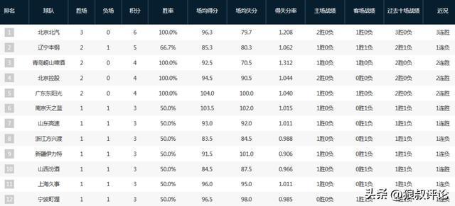 CBA最新排名:北京3连胜冲上第1广东领衔5队全胜上海爆冷输球