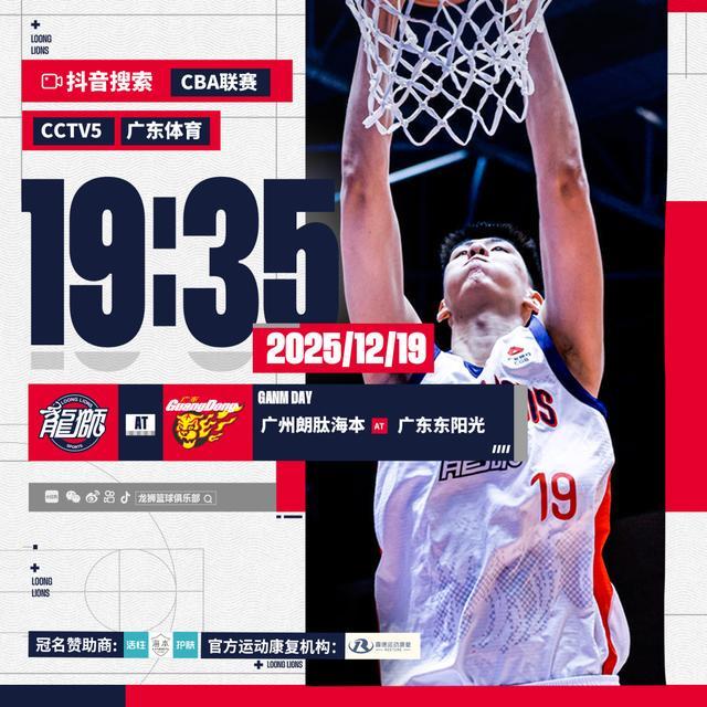 2025-2026赛季CBA联赛常规赛 第三轮 ⏰2025年12月19日 明晚 19:35 广州朗肽海本(客) - 广东东阳光(主) 直播:抖音搜索CBA联赛、CCTV5、广东体育