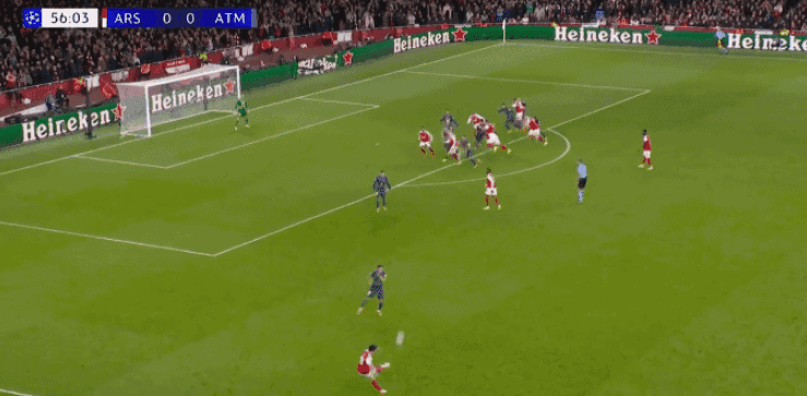 第26分钟拉亚出击玩火,送给了马竞边线球机会,床单军团快发边线球,阿尔瓦雷斯在拉亚还没有回到门前时就直接兜射,但皮球没有能够打在球门范围之内,狂攻不止的阿森纳,在第37分钟攻破马竞球门,可惜门前包抄建功的马丁内利越位在先,进球被主裁判取消,双方只能带着0-0的比分,回到了中场更衣室。