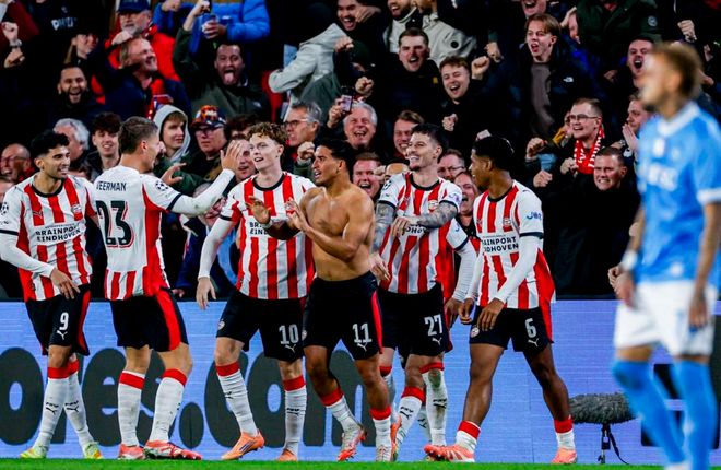 欧冠联赛阶段第3轮的一场比赛展开争夺,那不勒斯做客挑战埃因霍温。那不勒斯在联赛取得5胜2负的战绩,排名第3,和国际米兰罗马的积分一样,落后榜首的AC米兰1分。在欧冠赛场,那不勒斯首轮输给曼城,次轮险胜葡萄牙体育。这次面对的是荷甲排名第2的埃因霍温。结果,那不勒斯狂丢6球,惨遭逆转。