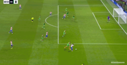 小西蒙尼右路强行突破下底,随即送出倒三角回传,阿尔马达跟上推射破门,马竞1-0领先!