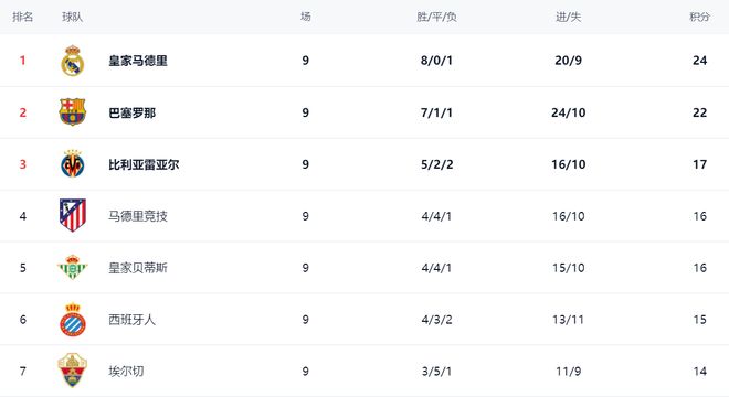 西甲第9轮进行了多场比赛。莱万特在主场惨败,以0-3输给了巴列卡诺。巴列卡诺开局就非常顺利。德弗鲁托斯在第12分钟就攻破莱万特的大门,帮助巴列卡诺取得梦幻开局。随后德弗鲁托斯延续出色的状态,再进一球梅开二度。下半场替补上场的阿尔瓦罗-加西亚进球杀死比赛。莱万特全场17次射门竟然没能进球。莱万特主场惨败,太耻辱了。巴列卡诺各项赛事取得一波3连胜,3场都完成零封。 皇家社会在客场完成绝平好戏。皇家社会此役对阵的是塞尔塔。在第20分钟皇家社会丢球了。杜兰帮助塞尔塔取得领先。半场临近结束前,斯塔费尔特两黄变一红被罚下,导致塞尔塔少踢1人。之后占据人数优势的皇家社会加大进攻力度,直到第89分钟才取得进球。索莱尔绝平进球拯救皇家社会。最终的比分定格为1-1!塞尔塔一胜难求,8场联赛7平2负。 皇马在客场绝杀赫塔费。这场比赛从一开始皇马就占据绝对优势,但是,久攻不下。在第77分钟,恩约姆替补上场不久就因为犯规被罚下,让赫塔费少踢1人。第80分钟姆巴佩站了出来,他接到居莱尔的直塞球,转身射门打进,完成绝杀!随后圣克里斯也两黄变一红被罚下。赫塔费只能9人应战,无力回天。最终皇马1-0击败赫塔费,拿到了来之不易的3分。姆巴佩再次成为全场最佳球员,他在俱乐部和国家队连续11场比赛取得进球,状态真的是太好了。 在积分榜上,皇马再次登顶。皇马8胜1负,拿到了24分。巴萨紧随其后,7胜1平1负的战绩,拿到22分。比利亚雷亚尔以17分排名第3。第4的是马竞,4胜4平1负,拿到16分。皇家贝蒂斯也是16分,排名第5。西班牙人以15分排名第6。 |