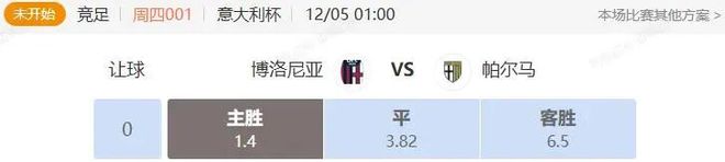 2.专家:高飞 竞足 周四001 意大利杯 博洛尼亚VS帕尔马 开赛时间:2025-12-05 01:00:00