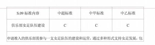 相比较前一个版本,新版《中国足球职业联赛俱乐部准入规程》主要变化部分,更改为: 各俱乐部可在13至21岁之间根据自身发展规划自行确定青少年梯队年龄层次。 中超俱乐部下改至少5支不同年龄层次的育少年梯队、中甲俱乐部下改至少4支不同年龄层次的育少年梯队、中乙俱乐部下改至少3支不同年龄层次的育少年梯队。 其中,中超俱乐部至少3支以上青少年梯队(13-15岁年龄段梯队及16-21岁年龄段梯队,各不少于一支,另外一支俱乐部可根据情况在13-21岁之间选择)、中甲俱乐部至少2支以上青少年梯队(13-15岁年龄段梯队及16-21岁年龄段梯队,各不少于一支)、中乙俱乐部至少1支以上青少年梯队(13-21岁年龄段梯队一支)球员的注册单位为本俱乐部,而非其他俱乐部或法人,且应参加由中国足协或中足联举办的官方赛事(含资格赛)。 另外,涉及到俱乐部女足队伍建设,中超标准更改为“C”,即不再强制要求中超俱乐部设立女足球队。同时,中甲和中乙标准不变,依旧为“C”。