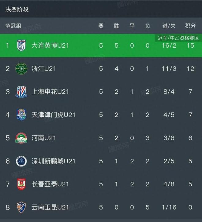 大连英博U21在争冠组5战全胜,5场比赛仅丢两球,积15分,排名第一。联赛仅剩下两轮,如果两个对手是是天津津门虎和深圳新鹏城,拿下任意一场就将夺冠,会师大连涵瑀,两队争夺一个中乙联赛名额。本场比赛彭顺杰在后卫线上也很稳,几次解围都展现出一名优秀中后卫的潜质。